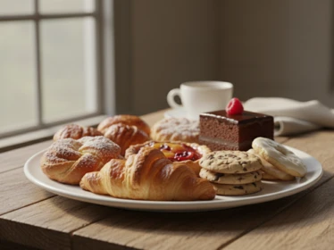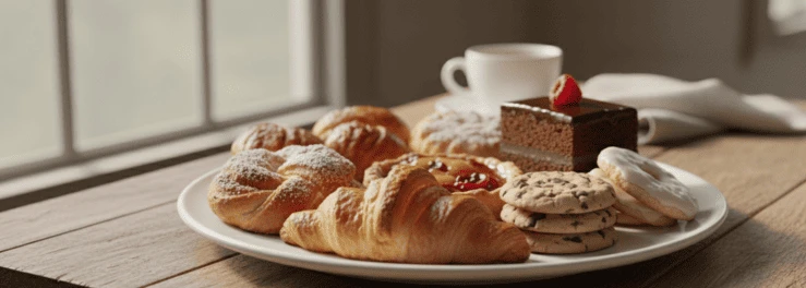 - Выпечка и кондитерские изделия — пирожные, торты, печенье сочетают быстрые углеводы и трансжиры. Они вызывают резкий подъем глюкозы, за которым следует столь же резкое падение, провоцирующее новый приступ голода.